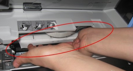 4.双面器卡纸:首先打开双面盖拉动一下看不能不能拉出纸,如果不能的话把就先墨盒拿出来就能轻易把纸张拿出了。