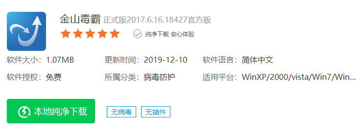 金山毒霸是金山官方推出的一款全新反病毒软件,功能十分强大,采用启发式搜索、代码分析、虚拟机查毒等业界成熟可靠的技术,病毒木马通通无所遁形,同时金山毒霸11还开启了病毒防火墙实时监控、压缩文件查毒、电子邮件查杀等新功能,保证计算机安全。