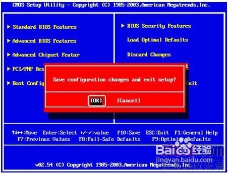 设定好了之后,我们还要保存bios设置,按键盘上面的F10键,就会出现一个保存的确认对话。点击ok,系统会再次重启。