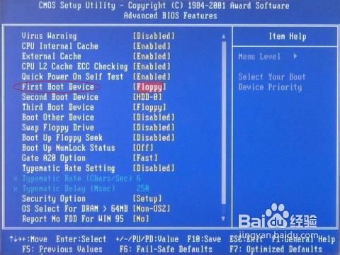 进入bios之后,要选择启动项,如果你不熟悉英语,可以找这样一个单词,即boot,只要出现此单词的选项,一般来说都是选择启动项的。找到这个选项,然后再找first boot这个选项,即首先启动的设备。找到之后,再选择CD-ROM这样一个选项,这就是光驱,我们要从光盘启动,就要选择这个选项。