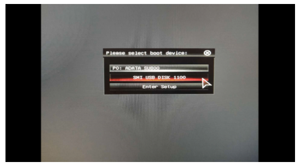5、随后将u盘启动盘插入到需要重装的电脑,出现开机界面后不断按下U盘启动快捷键,进入系统启动菜单后,设置u盘为第一启动项。