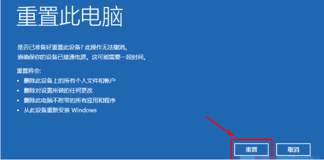 注意事项:如果提示无法重置,或者重置后问题依旧,说明遇到了靠电脑自己无法修复的故障,可以尝试方法二的借助u盘重装系统解决。