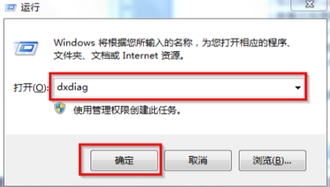 1、直接同时按下快捷键win+r打开win7系统的运行菜单,然后输入“dxdiag”回车确定打开DirectX诊断工具。
