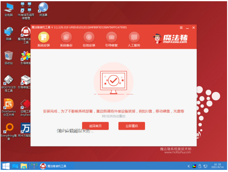5、装机软件会自动开始安装,安装完成之后,点击立即重启。